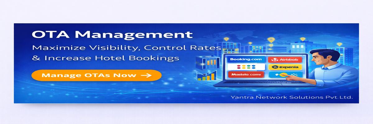 Yantra Network provides professional OTA Management services to help hotels and properties optimize listings, manage rates and inventory, improve visibility, and increase online bookings across major OTAs.